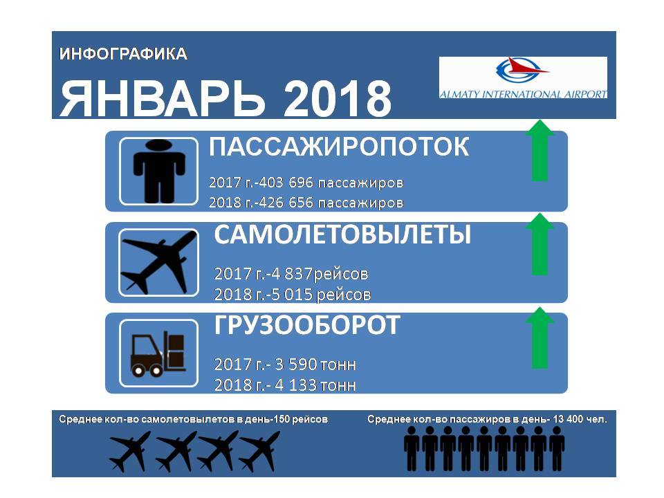 Пассажиропоток Международного аэропорта Алматы в первом месяце текущего года составил 426,656 человек, что на 5% больше чем за аналогичный период прошлого года.